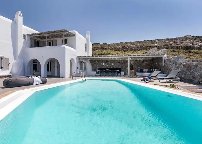 L'aeroporto di Mykonos è raggiungibile in 10 minuti di auto, mentre attrazioni naturali come la Spiaggia di Agios Stefanos si trovano a 4 km. La villa è a circa 30 minuti a piedi dai Mulini a Vento di Mykonos. Questa villa è a circa 2 km dalla Via Matoyianni.